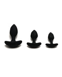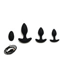 Take your training to the next level with MotoVibe's Plug N Play set. Included in this kit are two non-vibrating plugs and one remote controlled vibrating plug, each bigger than the one before it. With 10 different vibration modes, the water resistant rechargable plug will keep you entertained all night long.